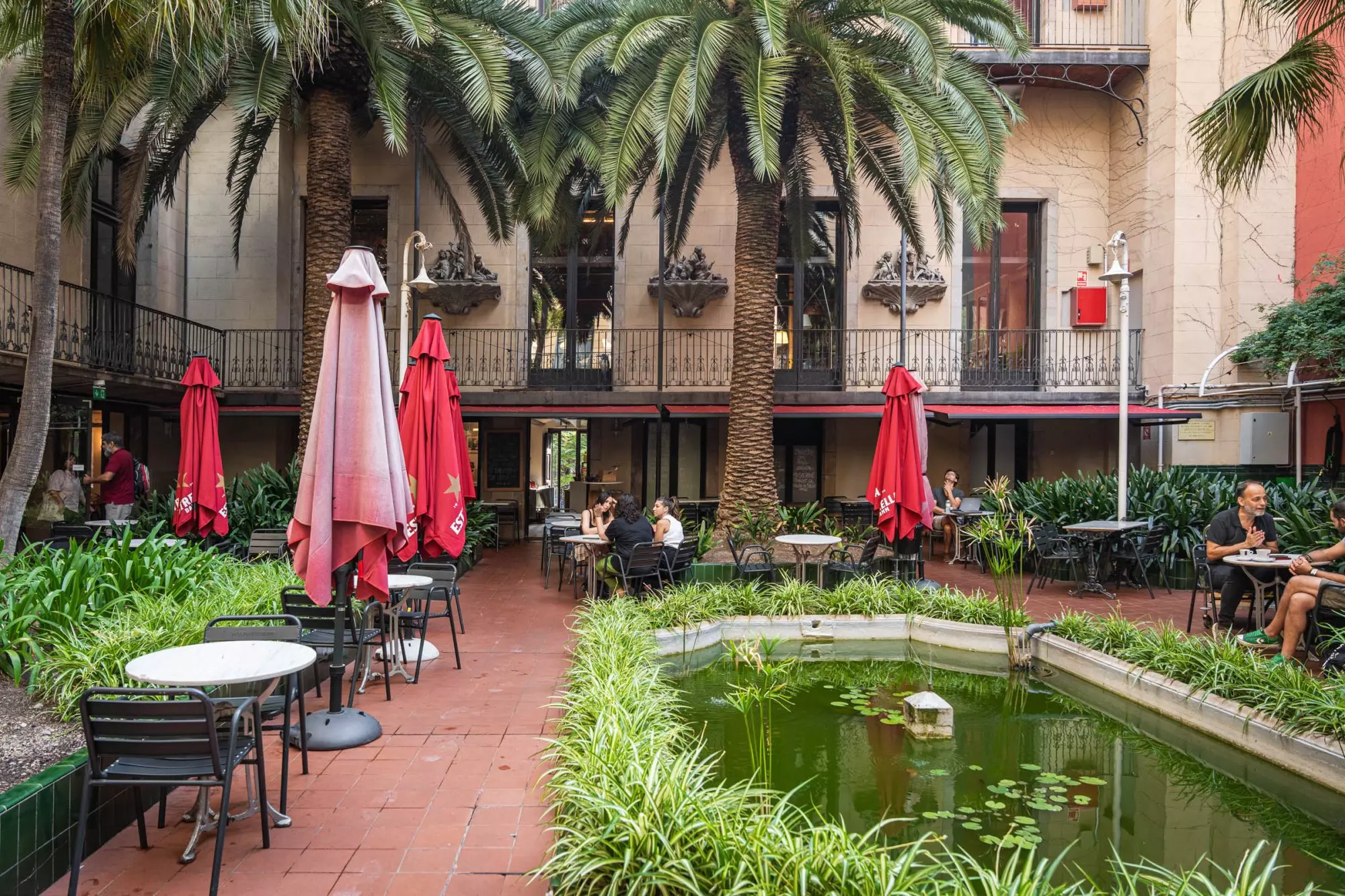 El Jardí de l’Ateneu no es solo una terraza: es un fragmento de la historia cultural de Barcelona. Fundado en el siglo XIX, el Ateneu ha sido durante décadas uno de los principales puntos de encuentro intelectual de la ciudad, frecuentado por escritores, pensadores y figuras clave del pensamiento catalán. El jardín, situado en el entresuelo del Palau Savassona elevado y reformulado por el arquitecto Josep Maria Jujol, nace como extensión de ese universo. No es casual su diseño: abierto, conectado a las salas de conversación, pensado para el intercambio de ideas. Aún hoy mantiene ese espíritu. Vegetación, estanque y silencio, aquí el tiempo se para. La propuesta gastronómica está basada en la cocina mediterránea y sencilla, acompaña.